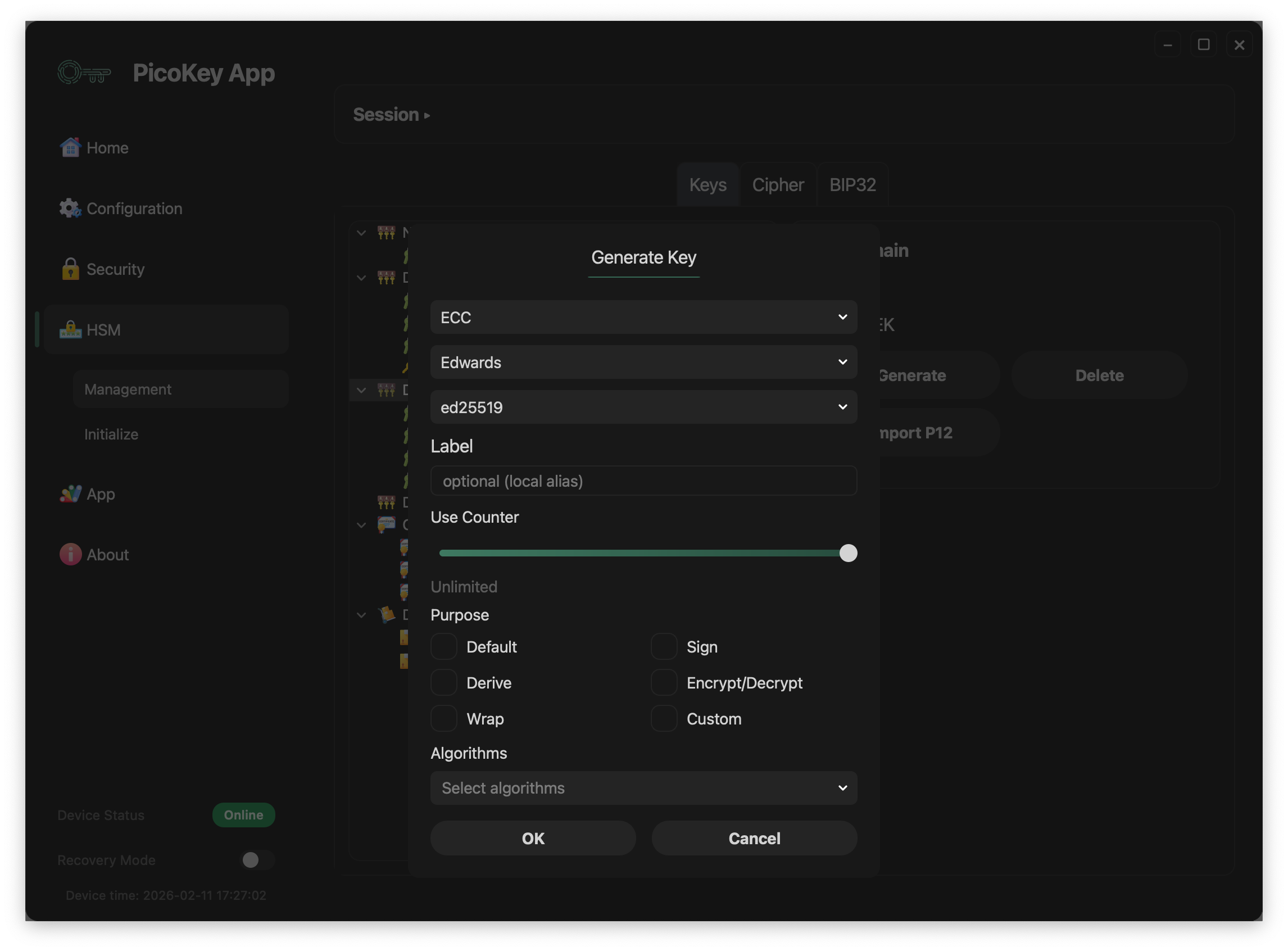 Pico HSM allows you generating multiple keypair (public and private). It supports different types of cryptographic keys and thanks to PKCS11 interface, it can be used with any app implementing PKCS11 interface. The ID parameter is an internal hexadecimal number for easy identification. The label is a string that also identifies the key. Despite it…